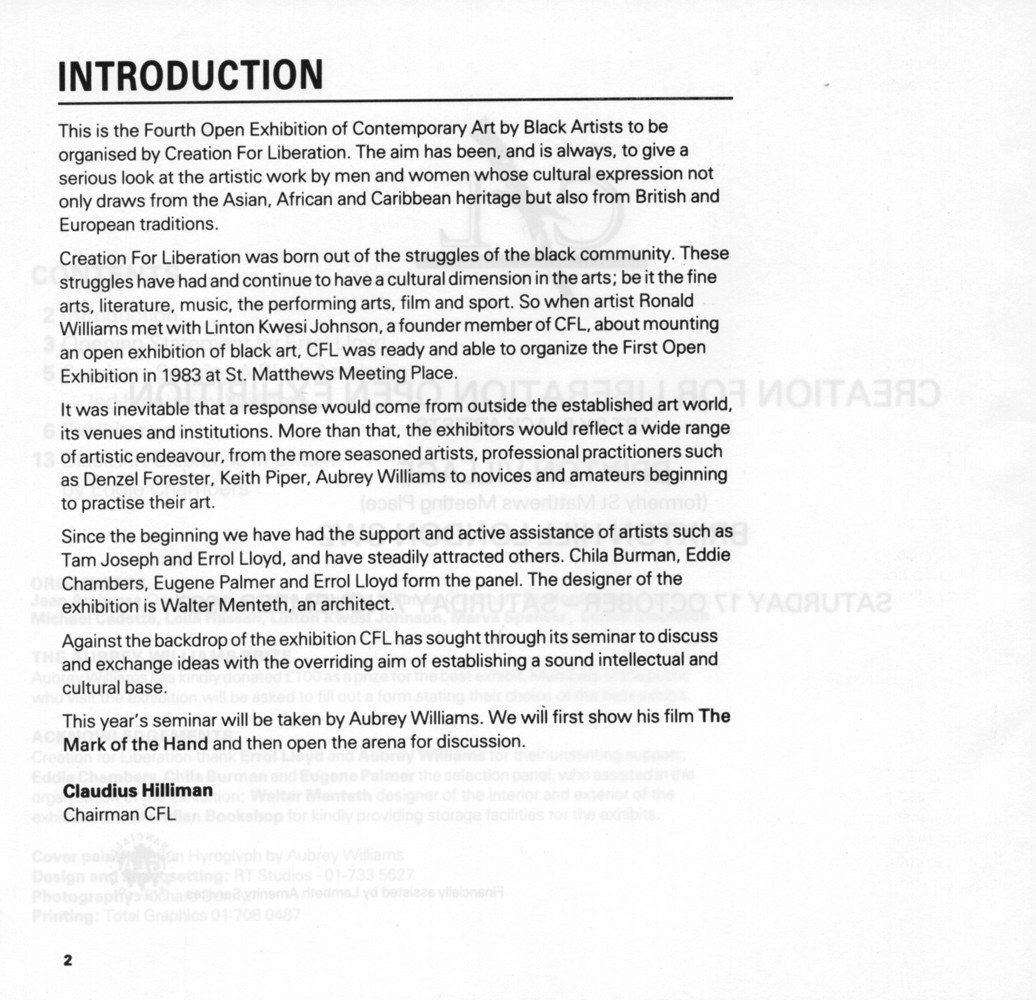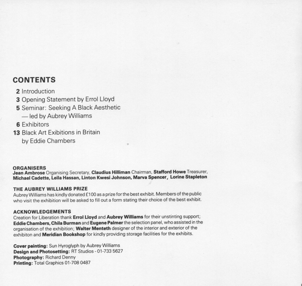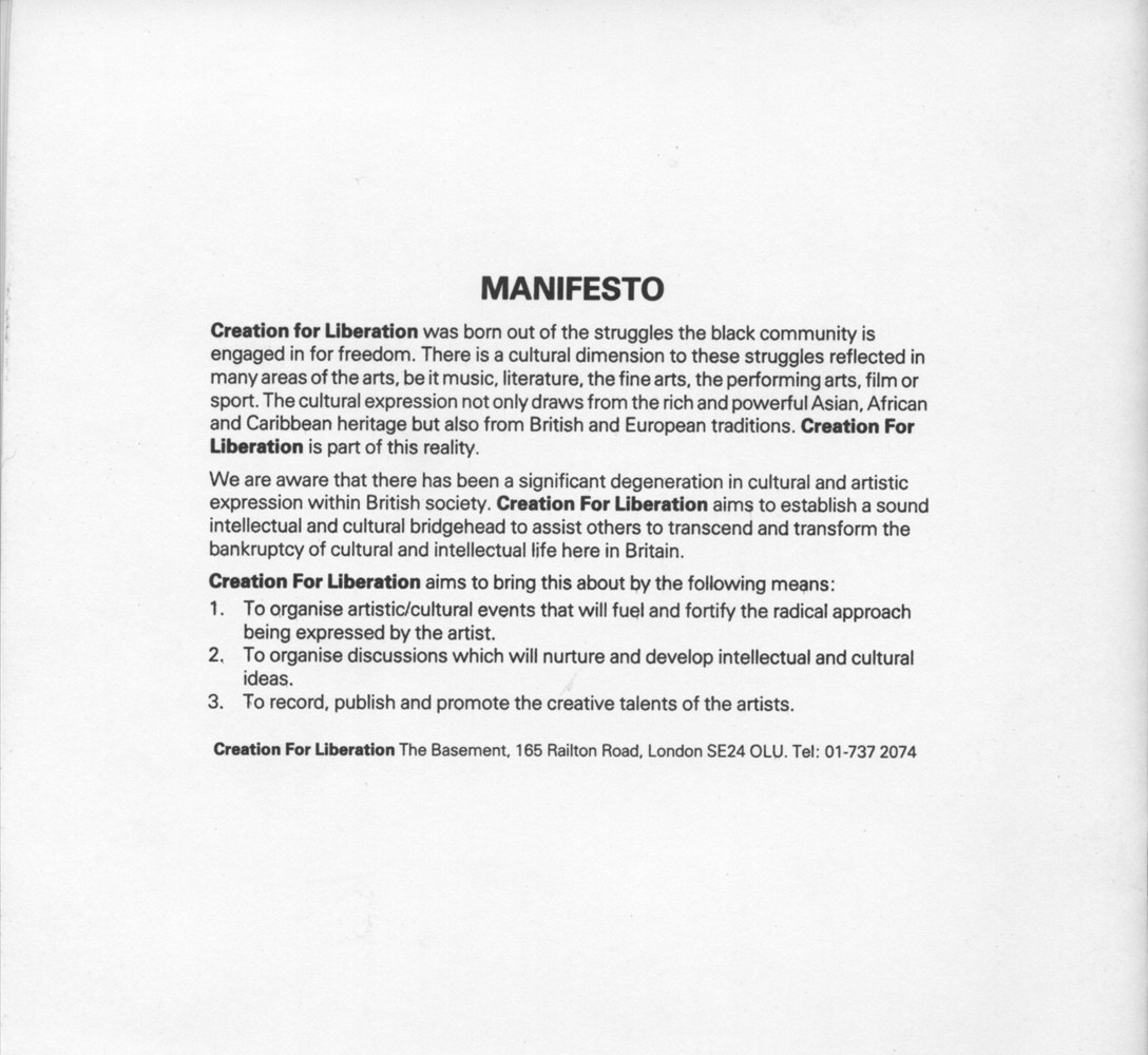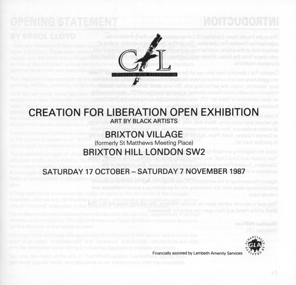 Creation For Liberation – 4th Open Exhibition by Black Artists: Brixton Village, 1987. Catalogue.