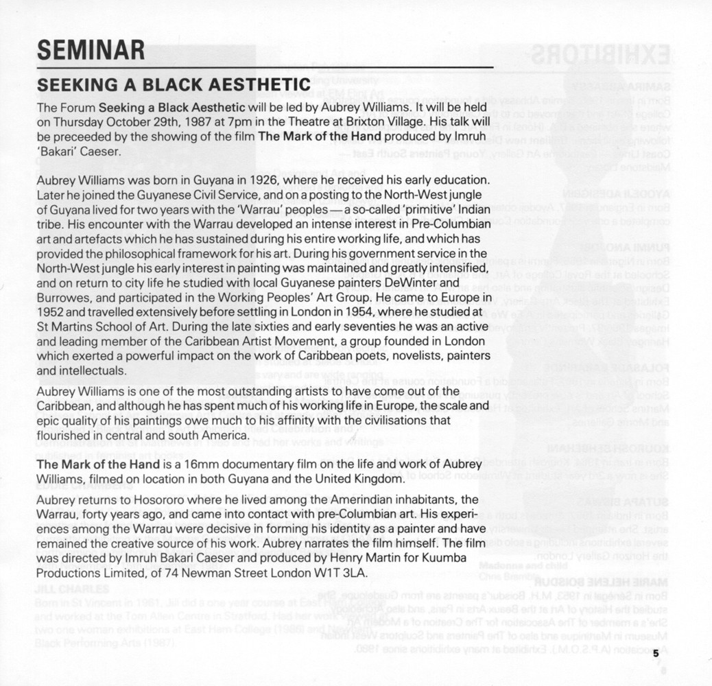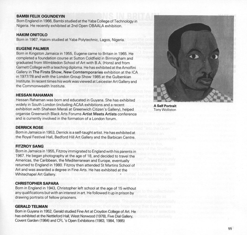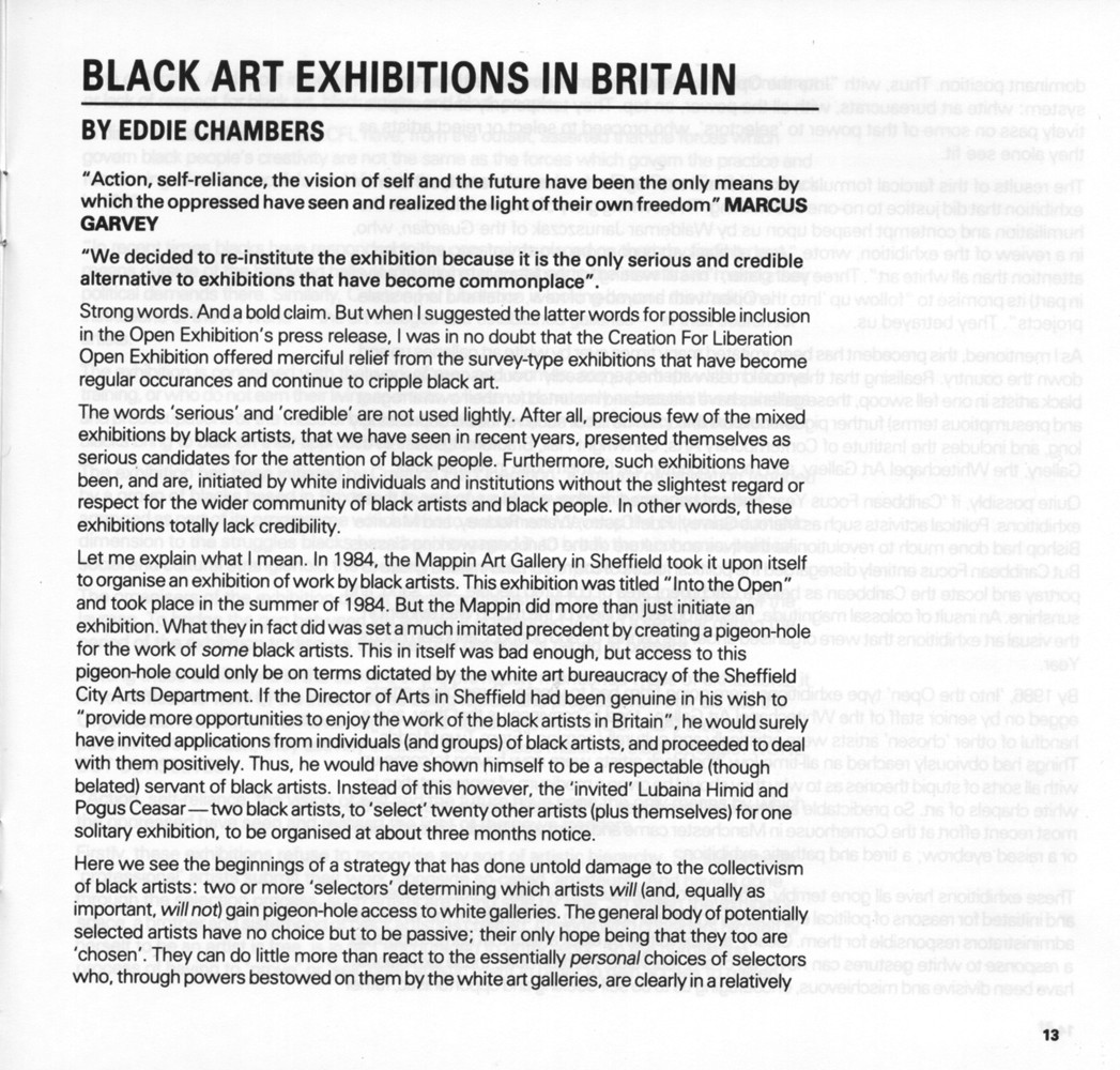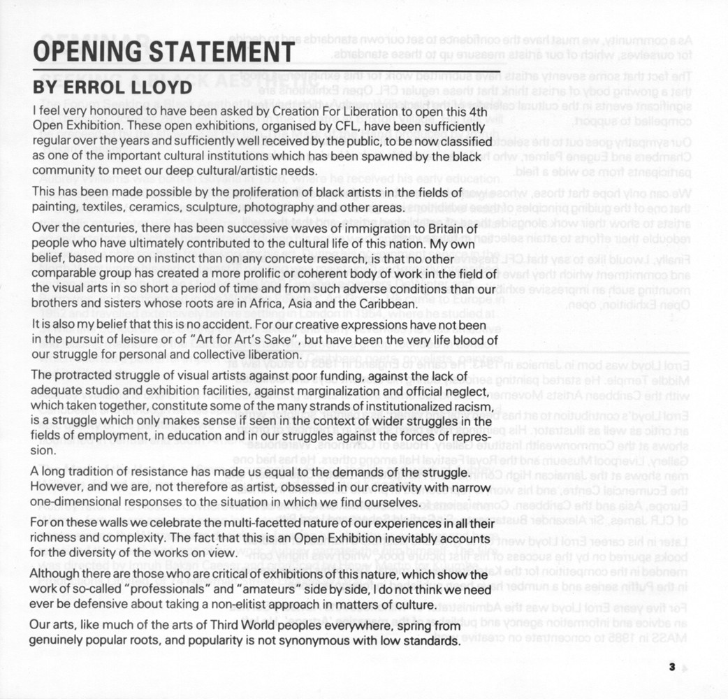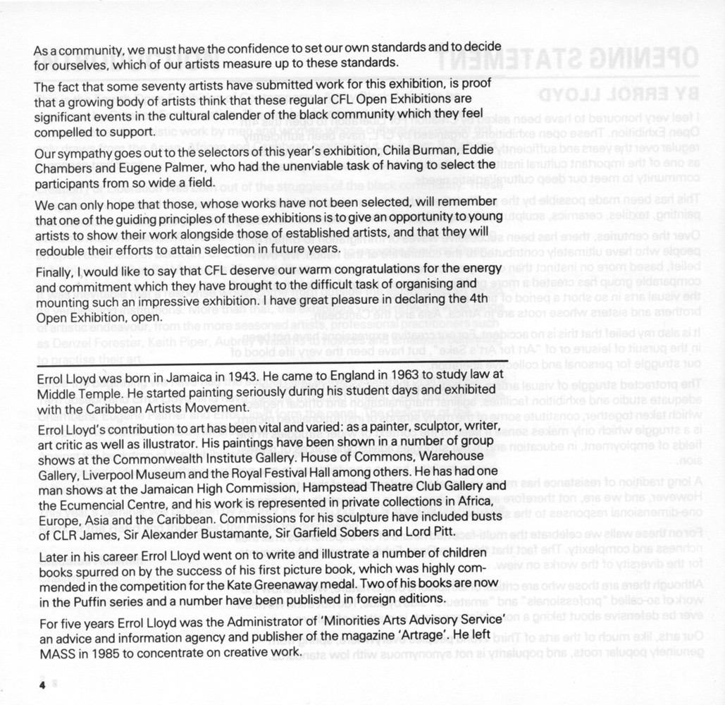Creation For Liberation – 4th Open Exhibition by Black Artists: Brixton Village, 1987. Catalogue.